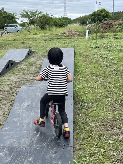 4歳程のお子さんは両親に買って頂いた、足で漕ぐ自転車を持参しての参加でした。